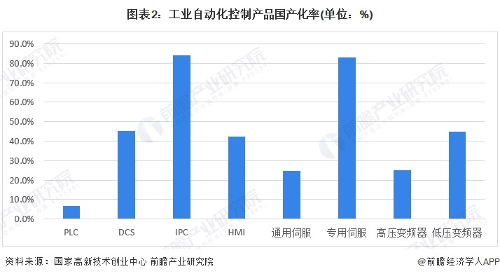 根據國家高新技術創業中心數據顯示,2021年,工業自動化控制產品中,PLC國產化率最低,僅6.8%。當前,外資企業高度壟斷我國中大型高端PLC市場,國產品牌在小型PLC市場占據一席之地。