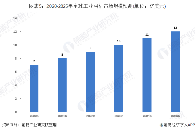 據前瞻產業研究院的預計,全球工業相機市場將在2020年達到7億美元,2025年增長到12億美元。工業相機市場規模增長可以歸因于制藥以及食品和包裝最終用途行業對工業相機不斷上升的需求。亞太地區工業相機市場的增長是由于工業4.0日益普及以及對人工智能的需求。