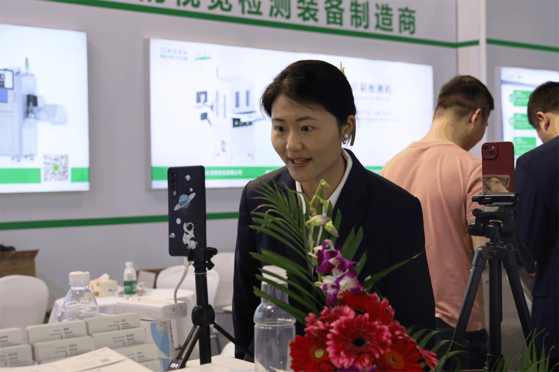展會現場,多家友商與科億科技聯機開展,現場連線車間智能化生產線,設備生產、成品、檢測一體化,動態演繹視覺檢測全線運行,大幅提升生產效率,降低人工成本。現場真實體驗設備生產智能化、自動化、高端化。